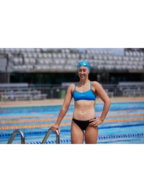 Fashion meets function in this sleek AMANZI Azure Sports Bikini Top. Whether you are swimming laps, catching waves or wanting to pop on a top under your race suit look no further, this stylish bikini top is a timeless piece that will never go out of style. With AMANZI Sports Bikinis now available in separates, the Azure Bikini Top is perfect to mix and match with the other bikinis in your wardrobe. This bikini top is the staple that every gal needs in her swim kit.