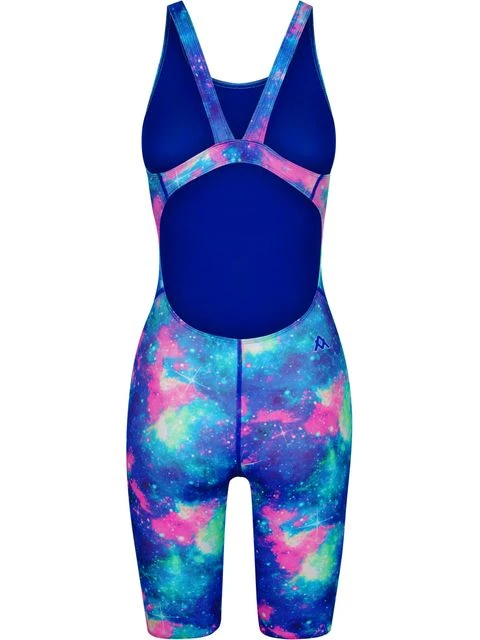 The AMANZI Astra Kneelength is made from Armor chlorine resistant fabric making it ideal as a training swimsuit and as an entry level racing swimsuit. The kneelength has been engineered to fit the needs of competitive and active swimmers, as well as triathletes and open water swimmers. The wide shoulder straps and back band are placed between the shoulder blades allowing maximum freedom and ease of movement whilst swimming. They also provide added support to the bust area. The wide open back follows the natural contours of the body providing an ergonomic fit and superior comfort.Â