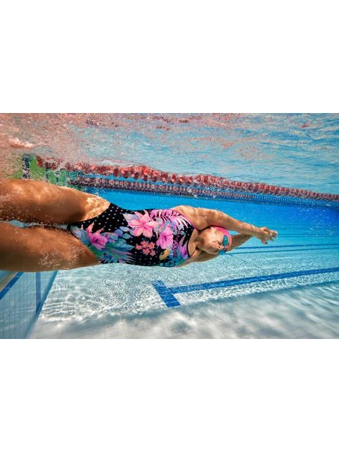 The AMANZI Botanica Pro One Piece is an all purpose training swimsuit engineered to fit the needs of both competitive and active swimmers. The thin shoulder straps are designed to reduce the weight placed on the neck and shoulder muscles and allow for maximum freedom and ease of movement whilst swimming. The wide open back follows the natural contours of the body providing an ergonomic fit and superior comfort. The medium cut leg is suitable for all figures.Â