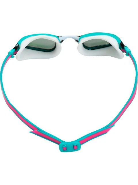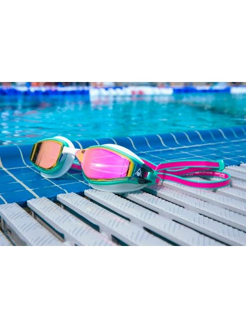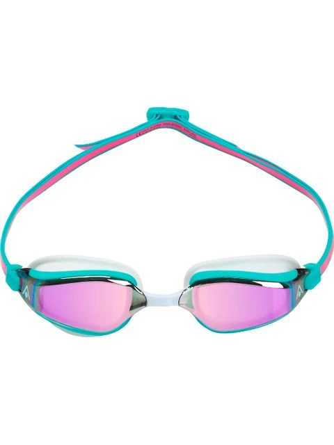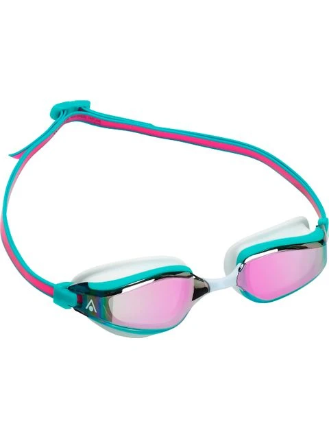 The Aqua Sphere Fastlane Goggles – Pink Titanium Mirror/Pink/Turquoise are the first low profile micro gastket goggle for the Aqua Sphere brand. The asymmetrical, anatomic lens design offers a natural watertight fit with integrated curved lenses for a wide field of vision in a low profile goggle. The Fastlane has a patented Strap Management System offering quick hassle free strap adjustment plus four nose bridge options ensuring a perfect fit. This is a perfect goggles for your everyday training needs with lens ioptions to support any type of weather.