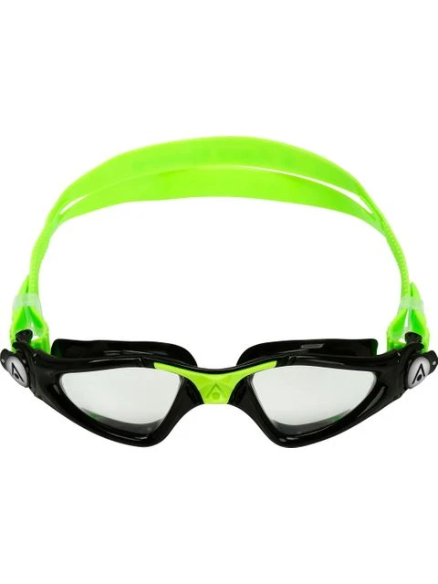 The Aqua Sphere Kayenne Junior Goggles – Clear/Black/Bright Green are designed for wide vision and performance. The unique oversized patented curved lens technology gives you 180 degree field of vision.Â