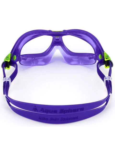 The Aquasphere Seal Kid 2.0 Clear Swim Mask – Violet offers junior swimmers a leak free fit around the eyes whilst swimming. The Seal Kid 2.0 Swim Mask utilises the Aqua Spehere patented curved lense for a wide field of vision making children more confident in the water. The easy to adjust side buckles make it easy for parents and kids alike to adjust.