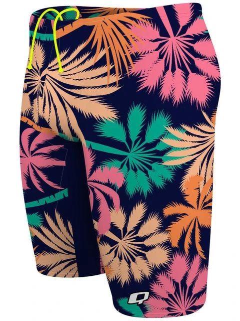 The Q Swimwear Jammers – Blue Palms offer full coverage, a compressive fit, freedom of movemnet and drag reduction. The jammers have a bright drawstring waistcord and a Q Swimwear logo printed on the lower front leg.
