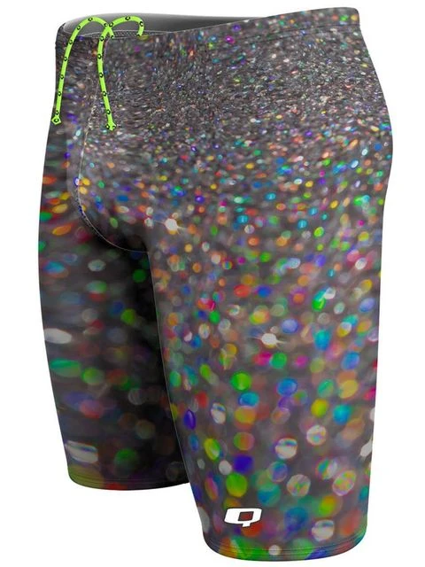 The Q Swimwear Jammers – Dipped in Glitter offer full coverage, a compressive fit, freedom of movemnet and drag reduction. The jammers have a bright drawstring waistcord and a Q Swimwear logo printed on the lower front leg.
