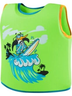 The Speedo Float Vest – Chima the African Penguin has been designed to give learners a new sense of independence and the buoyancy they need to start kicking and using their arms. This bright green Float Vest provides high visibility and includes foam inserts for buoyancy. A zip-up front helps keep little swimmers secure as they’re splashing in the water. Manufactured to Australian and European safety standards. Children must be supervised when wearing this product.