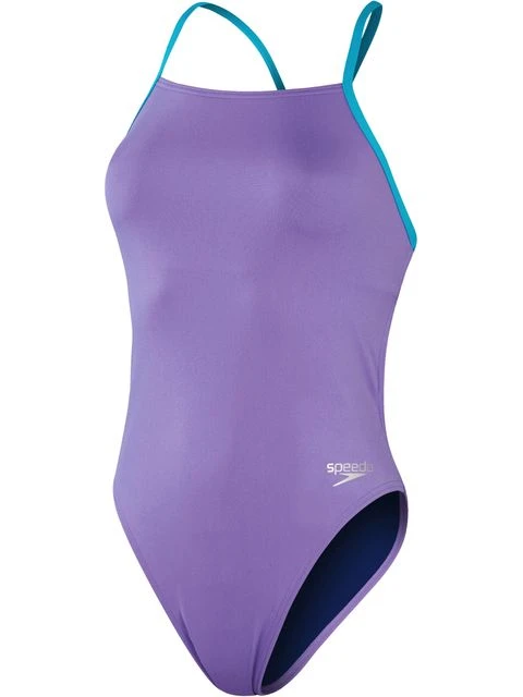 The Speedo Lattice Back One Piece – Miami Lilac/Aquarium will have you power through training in this punchy Miami lilac swimsuit with pop out aquarium coloured straps. We’re all about the details with this stunning lilac Lattice-Back swimsuit, which features an intricate back design, while a comfortable rubber under-bust band provides light support as you fly thought training. Fully lined in ammonite blue for comfort and modesty, it includes an extra-high leg for maximum freedom of movement across all strokes. Designed to be durable and better for the environment, the suit is made from the Speedo ECO Endurance+ fabric, which is 100% chlorine resistant, quick-drying and made using 50% recycled materials.