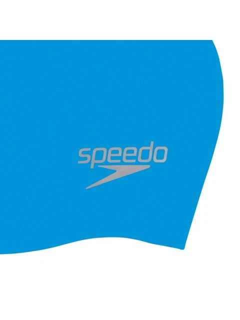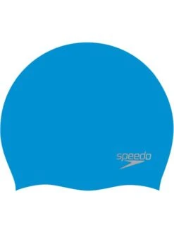 The Speedo Plain Moulded Swim Cap – Blue/Chrome is made from silicone for great comfort and fit.