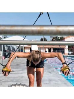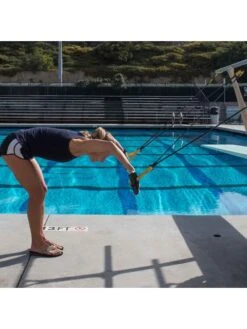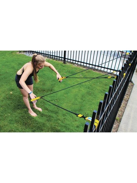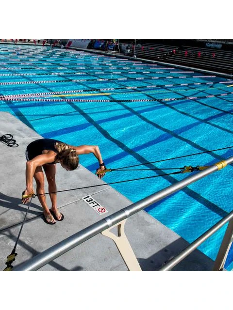 The StrechCordz Breastroke Machine S108 strengthens muscles and increases power through outward and inward sweep exercises.  Attaches to a diving board, fence, rail or any stationary object. Swimmers use StrechCordz resistance exercise products to improve stroke, strength and endurance.Â