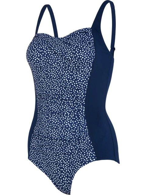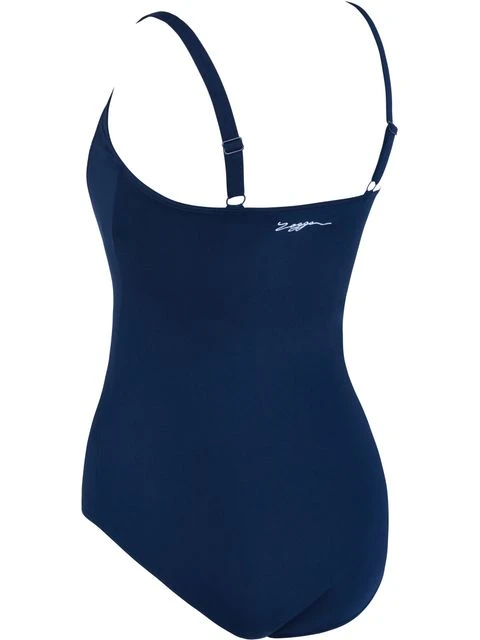 The Zoggs Ruched Front One Piece – Martinique features adjustable straps and flattering ruching across the body, the Ruched Front One Piece is one of Zoggs most slimming swimwear styles. With added support through fixed foam cups and a low leg for full coverage this swimsuit looks & feels good in and out of the water. Made with Zoggs eco friendly Ecolastâ„¢ fabrication, the ruched front one piece is also chlorine resistant for 250+ pool hours.Â